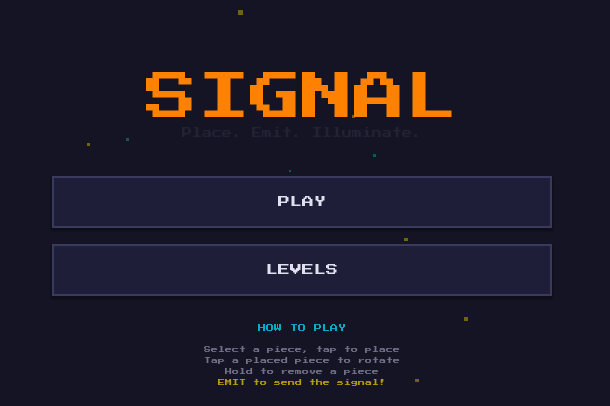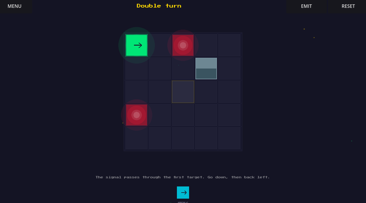 A minimalist puzzle game where you guide a signal from source to target by placing and rotating pieces on a grid.