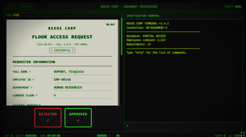 You are a new employee. Your job is simple: process forms, verify data through your terminal, and stamp APPROVED or REJECTED.